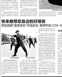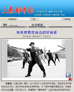 為提升構(gòu)建和諧新生活,傳遞保安行業(yè)正能量,新華網(wǎng)將在西安等全國30多個(gè)城市展開“最美保安”大型公益活動(dòng)。該活動(dòng)旨在傳播“中國夢”,讓保安行業(yè)得到社會(huì)應(yīng)有的尊重,讓保安從業(yè)者得到應(yīng)有的社會(huì)肯定,從產(chǎn)生從業(yè)自豪感,更好的發(fā)揮社會(huì)作用,進(jìn)而樹立保安隊(duì)伍的良好形象,促進(jìn)保安服務(wù)行業(yè)健康發(fā)展。