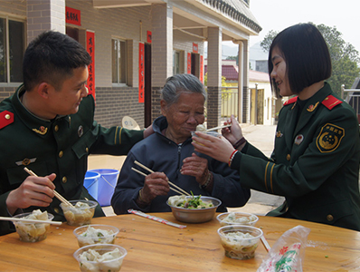 ??? 廣西欽州邊防支隊圩埠邊防派出所官兵在2015年春節前夕,帶著節日的祝福來到轄區“廣西五保第一村”——西顯五保村看望慰問“五保戶”老人。這個所官兵為老人們帶去了豬肉、活雞、水果等慰問品,并送上慰問金,為老人們送去了真誠的祝福和節日的問候……【詳細】