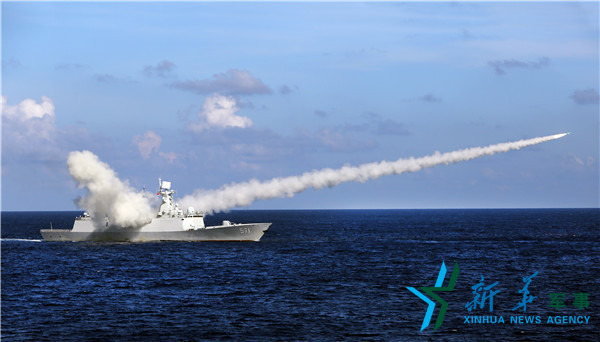 ??? 海軍在海南島至西沙附近??沼蚪M織實兵實彈對抗演練,這是導彈護衛艦運城艦發射反艦導彈(7月8日攝)。新華社記者查春明攝