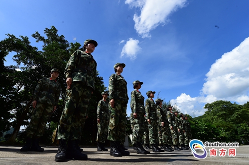 磨練意志!高溫下深圳邊防女兵苦練軍姿