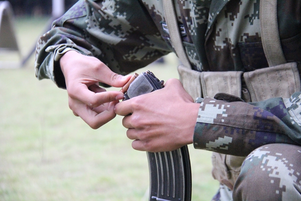 ????射擊場上,隨著指揮員一聲令下,新兵分批次領取實彈奔向射擊地線、臥姿裝彈、據槍瞄準,動作干脆利落。 “一號靶42環(huán),二號靶48環(huán)、三號靶……”報靶員通過對講機向記錄員如實報告。經最后成績統(tǒng)計,這個新訓團廣西籍新兵唐美飛在考核中取得了步槍精度射擊5發(fā)子彈49環(huán)的最好成績,他興奮說道:“我打了49環(huán),主要是我們班長教的好,我會加倍努力,不辜負班長對我們的嚴格要求。”(陳敬龍)