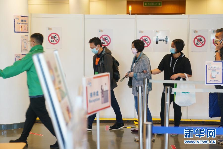 2月26日,在位于香港中央圖書館的社區(qū)疫苗接種中心內(nèi),市民排隊準備接種疫苗。新華社記者 王申 攝