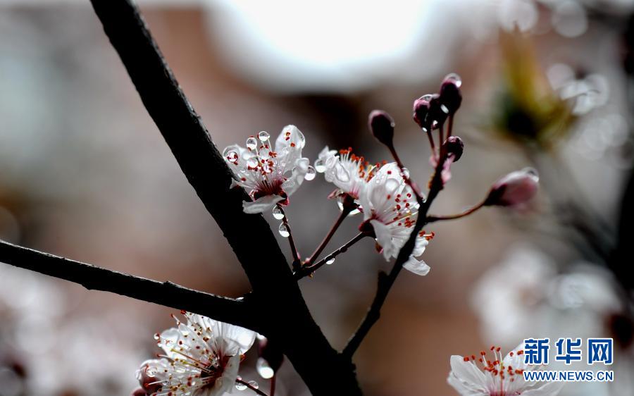 這是2月28日在上海市閔行區街頭綠地拍攝的雨中即景。