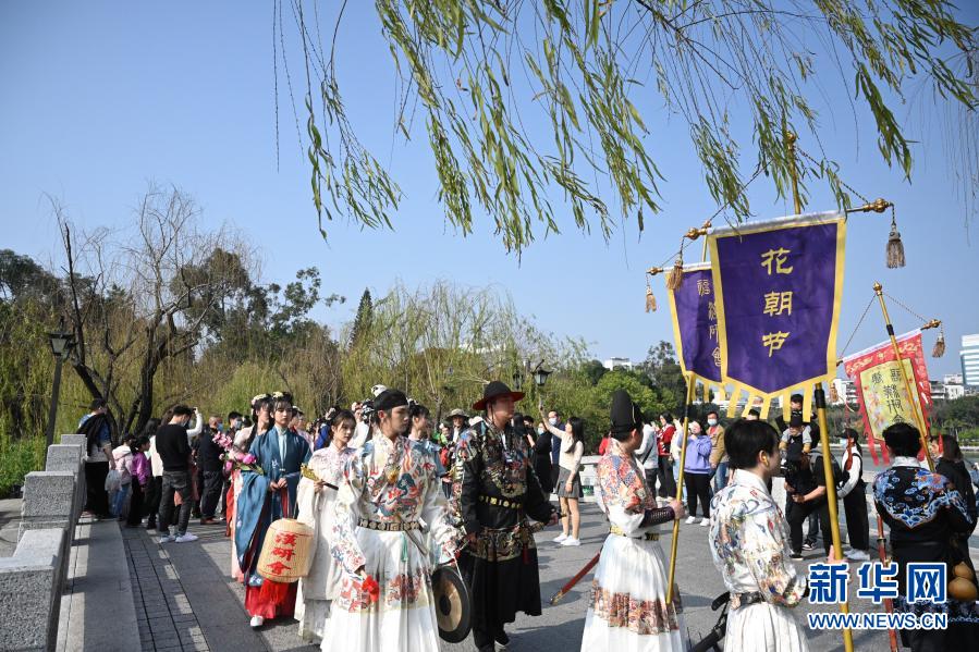 3月13日至14日,第二屆福州西湖花朝節(jié)系列活動(dòng)在福州西湖公園舉行,流觴詩會(huì)、漢服雅集、百花祭典、簪花游園等10場活動(dòng)再現(xiàn)花朝節(jié)傳統(tǒng)民俗文化之美。