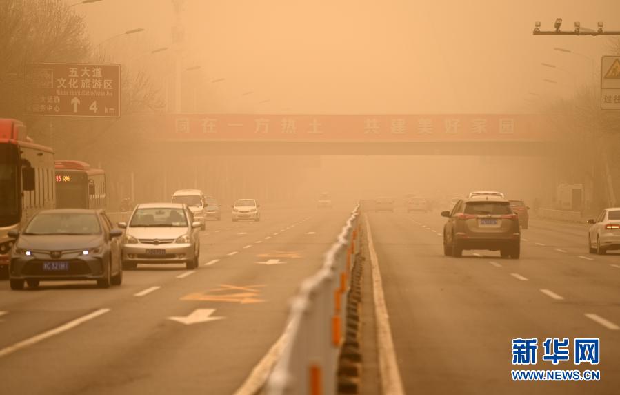 這是3月15日拍攝的天津市南開區道路。當日,我國北方多地出現沙塵天氣。新華社記者 李然 攝