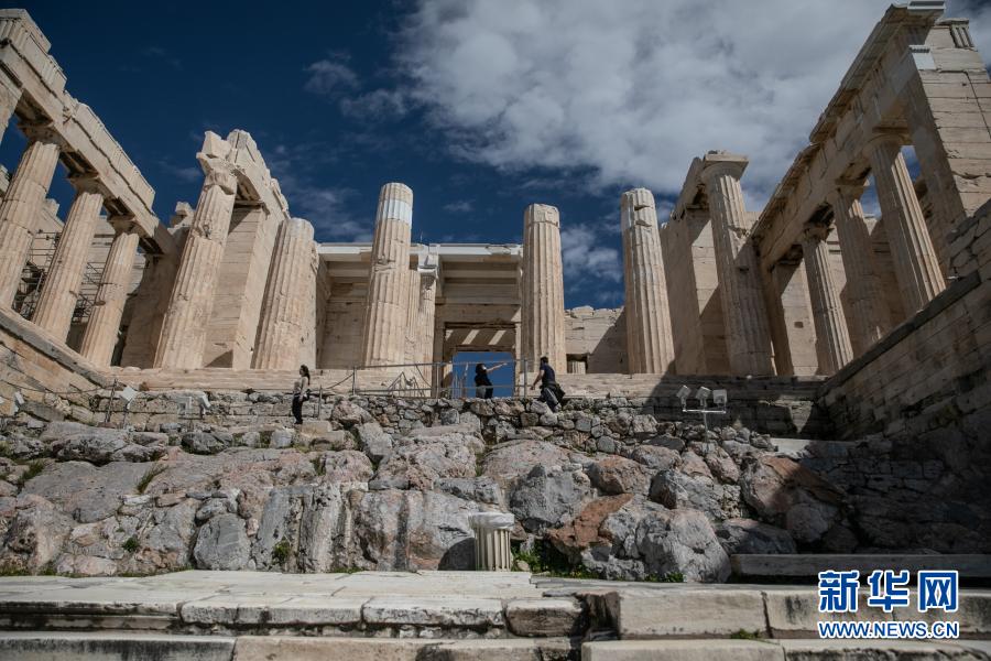 3月22日,游客游覽希臘雅典衛(wèi)城。希臘露天考古遺跡22日起恢復開放。游客需遵守保持社交距離和佩戴口罩等防疫規(guī)定。新華社發(fā)(萊夫特里斯·帕察里斯攝)