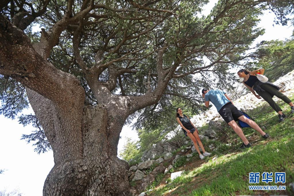 4月18日,游人在黎巴嫩巴魯克雪松保護區內游覽。