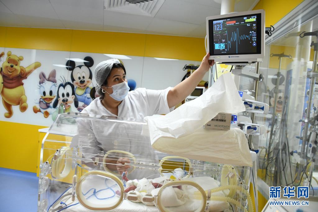 5月5日,醫務人員在摩洛哥卡薩布蘭卡一家醫院照顧新生嬰兒。