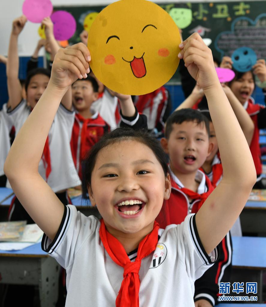 5月7日,湖北省宜昌市秭歸縣實(shí)驗(yàn)小學(xué)的學(xué)生展示自己制作的笑臉。世界精神衛(wèi)生組織將每年的5月8日定為“世界微笑日”,希望通過(guò)微笑促進(jìn)人類(lèi)身心健康,增進(jìn)社會(huì)和諧。新華社發(fā)(王輝富 攝)
