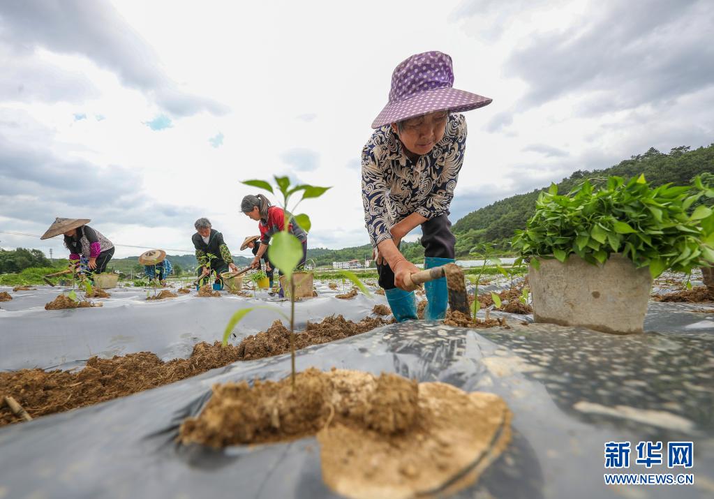 5月13日,村民在玉屏侗族自治縣田坪鎮(zhèn)慶寨村辣椒種植基地管護(hù)辣椒苗。