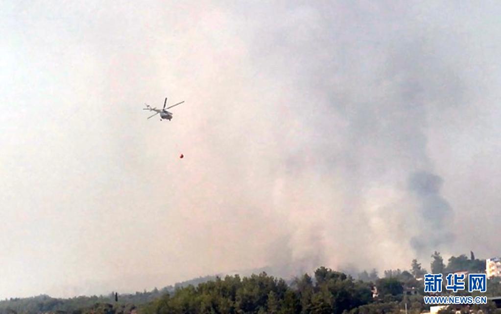 7月31日,直升機在土耳其馬納夫加特附近參與滅火。