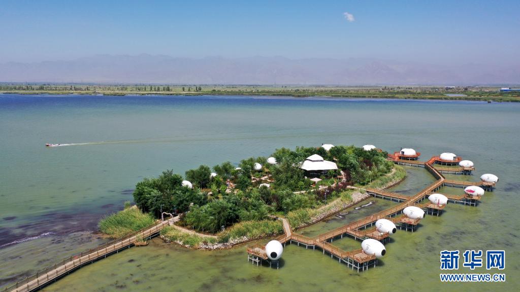 夏日時節,地處寧夏石嘴山市平羅縣的沙湖景區內,葦綠沙黃、碧波蕩漾。