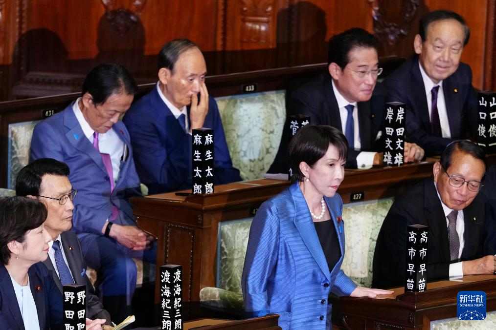 10月21日,日本自民党总裁高市早苗(前排右二)在东京参加临时国会众议院首相指名选举。