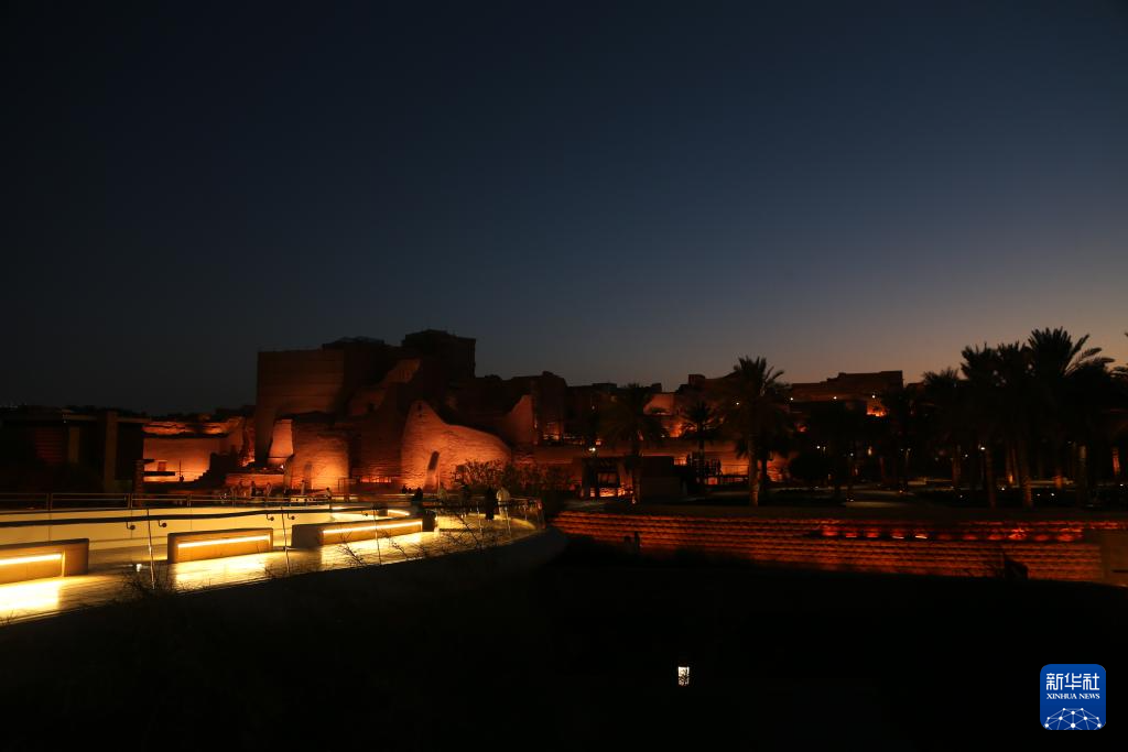 这是10月27日在沙特首都利雅得市区拍摄的迪里耶夜景。
