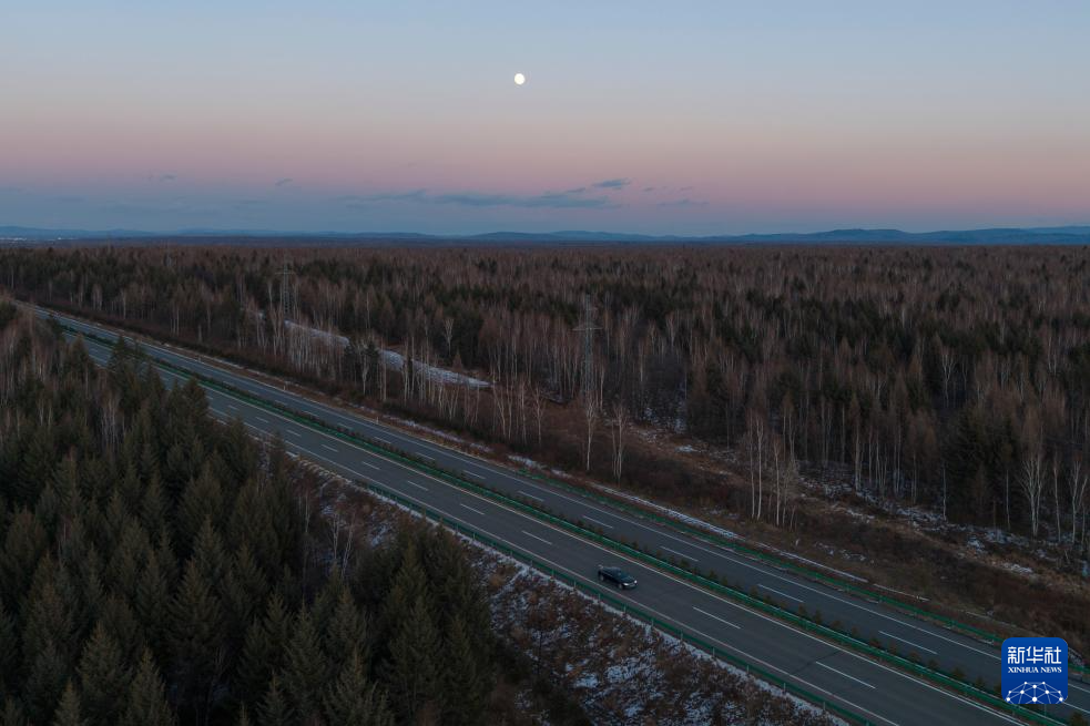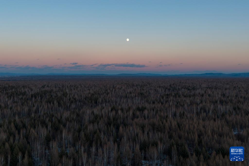 这是11月4日拍摄的黑龙江省伊春市丰林县上空的月亮(无人机照片)。