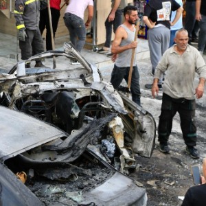 11月3日,在黎巴嫩南部奈拜提耶省杜韦尔镇,人们在以色列空袭现场清理车辆残骸。新华社发(阿里·哈希绍摄)pagebreak