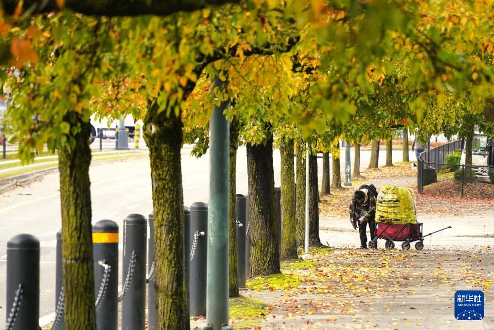 11月4日,在美国俄勒冈州波特兰,无家可归者在街头拾荒。