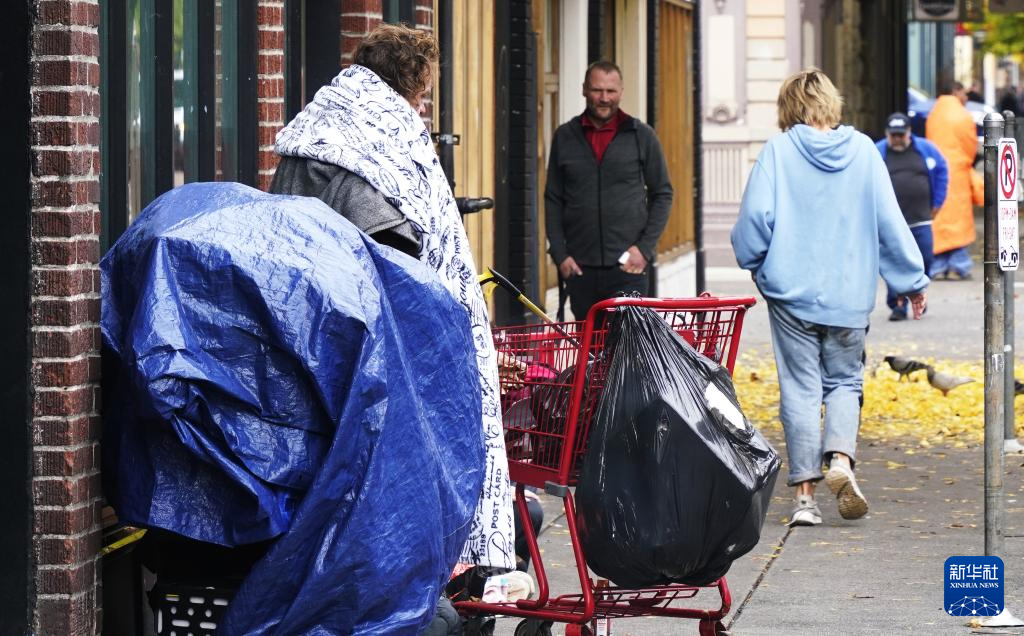 11月4日,在美国俄勒冈州波特兰,无家可归者在街头睡觉。