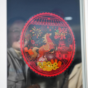 2月16日,在土耳其阿克萨拉伊省图兹湖地下天然气储库扩建项目二期工程营地,中工国际的职工在贴窗花。