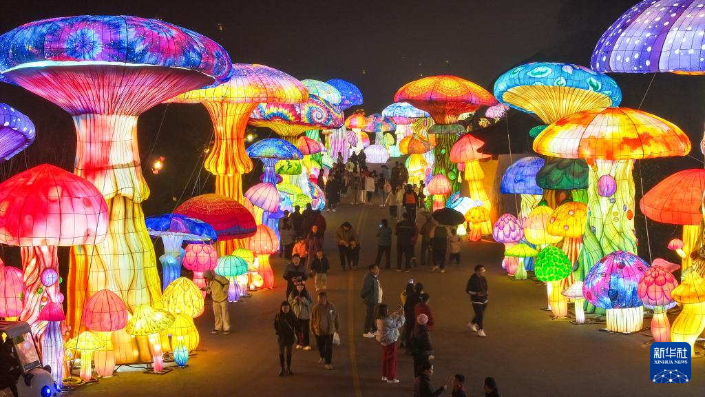 2月17日,游客在贵州省黔西南布依族苗族自治州兴义市阳光谷旅游度假区的灯会上游玩(无人机照片)。