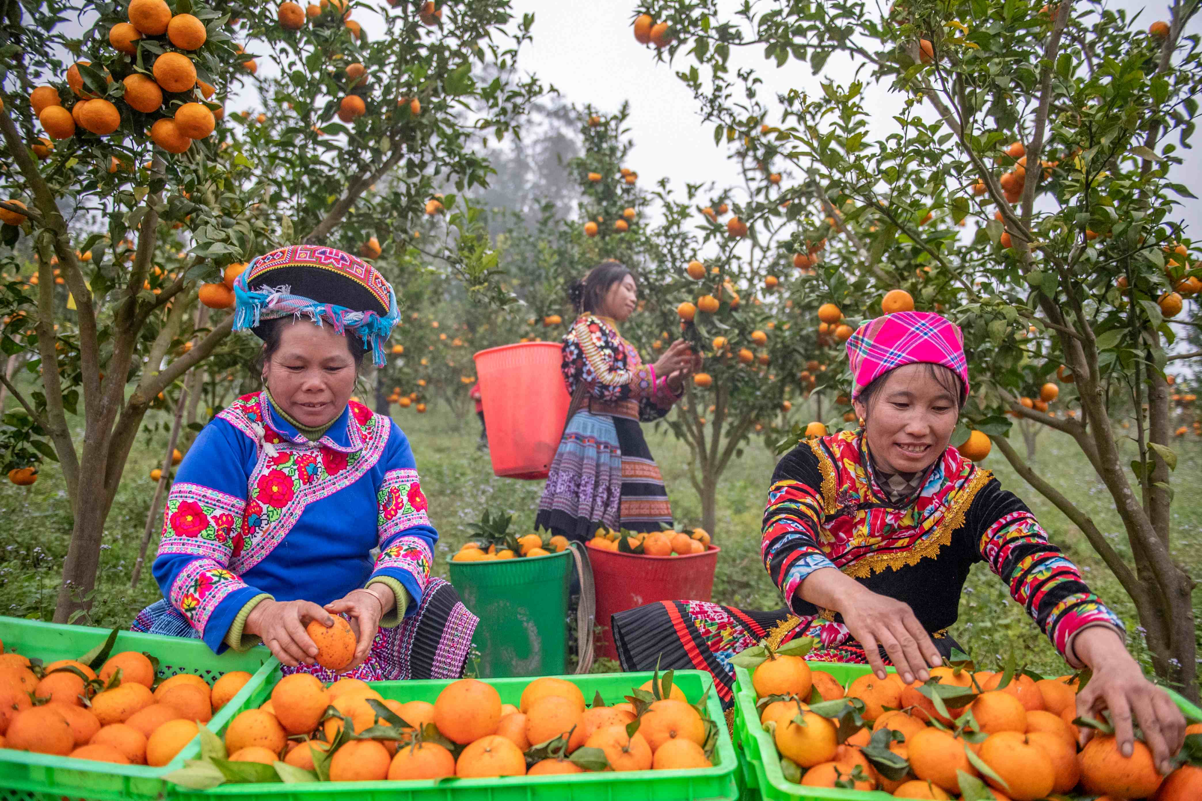 冬日里,云南省文山州馬關縣都龍鎮的橘園基地里,飽滿的橘子掛滿枝頭,果農們喜笑顏開,有條不紊地采摘、分揀、打包,一派豐收景象。
