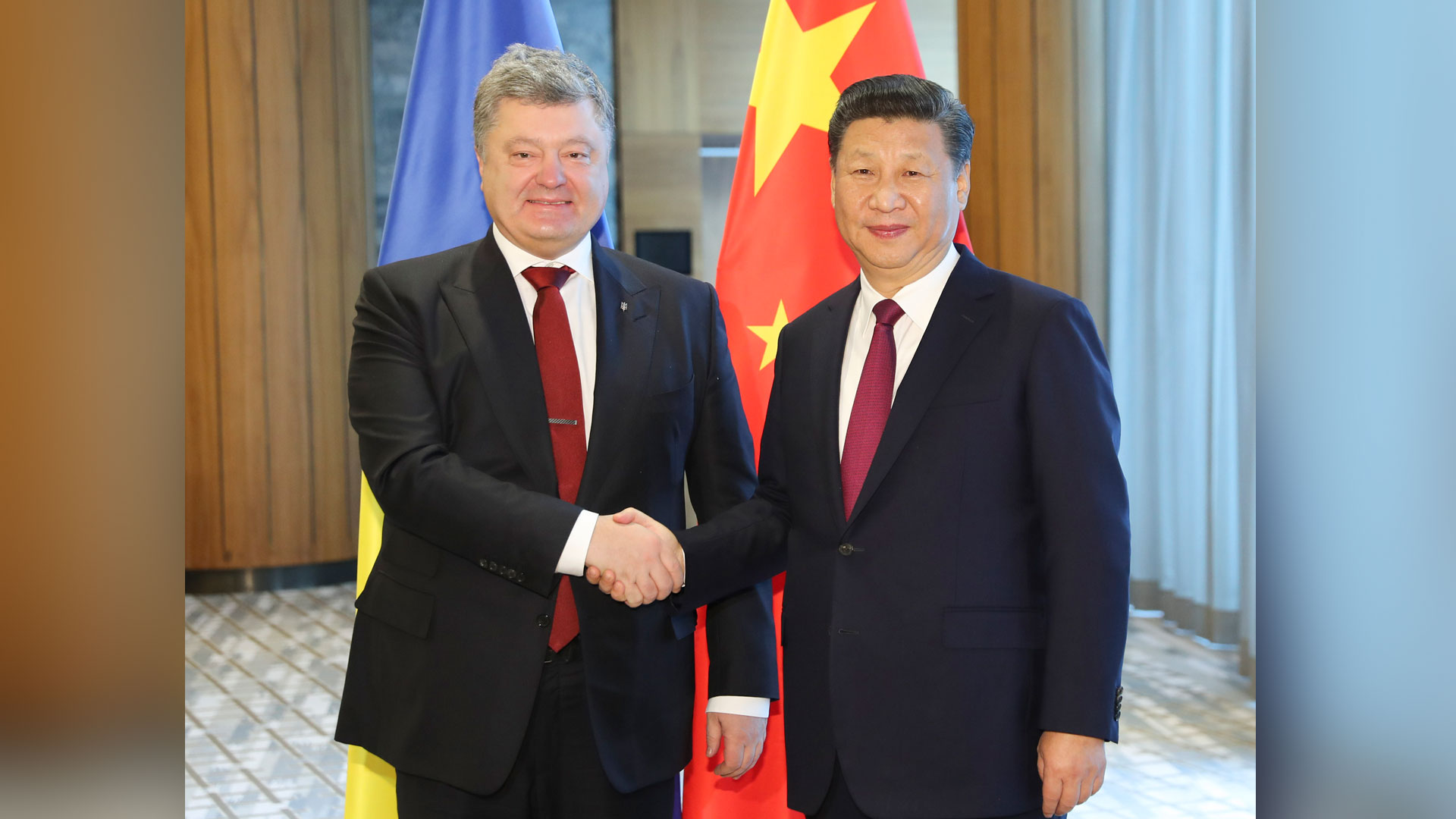 1月17日,國家主席習近平在瑞士達沃斯會見烏克蘭總統波羅申科。新華社記者 丁林 攝2017-01-18