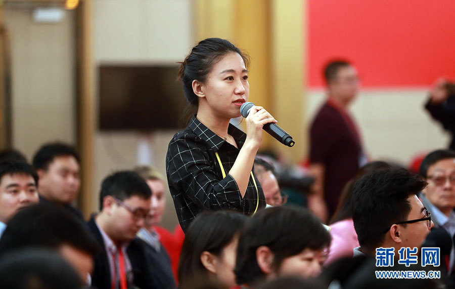 ??? 10月19日,十九大新聞中心舉辦集體采訪,邀請(qǐng)工信和通訊領(lǐng)域代表談走新型工業(yè)化道路。圖為香港大公文匯傳媒集團(tuán)記者提問(wèn)。新華網(wǎng) 郝廣鵬攝