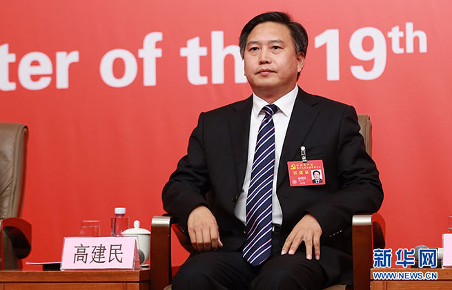 10月23日,十九大新聞中心舉辦集體采訪活動,主題為“打好生態環保攻堅戰”。圖為河北省環保廳黨組書記、廳長高建民。新華網 郝廣鵬攝