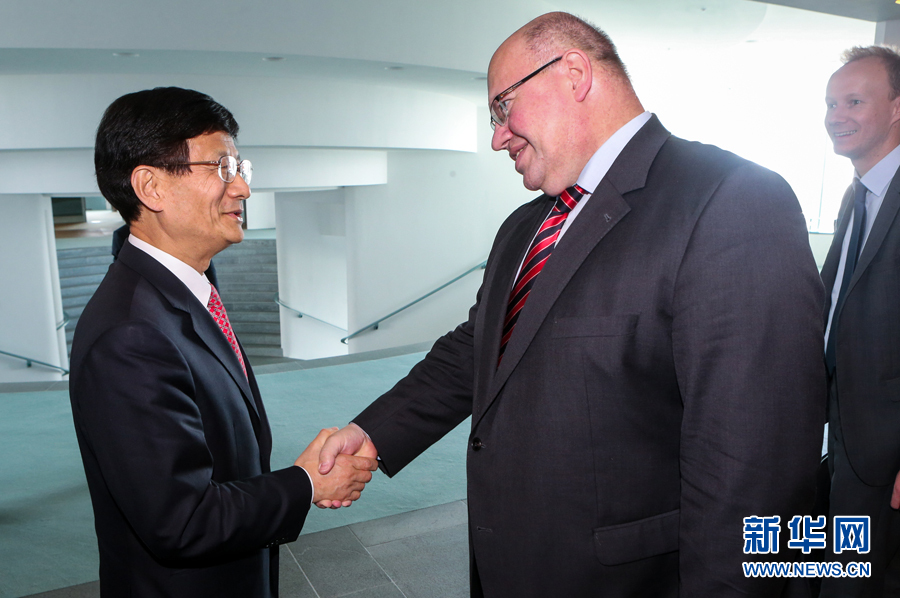 ??? 6月29日,習(xí)近平主席特使、中共中央政治局委員、中央政法委書(shū)記孟建柱(左)在德國(guó)首都柏林會(huì)見(jiàn)德國(guó)總理府部長(zhǎng)阿爾特邁爾。新華社記者張帆攝