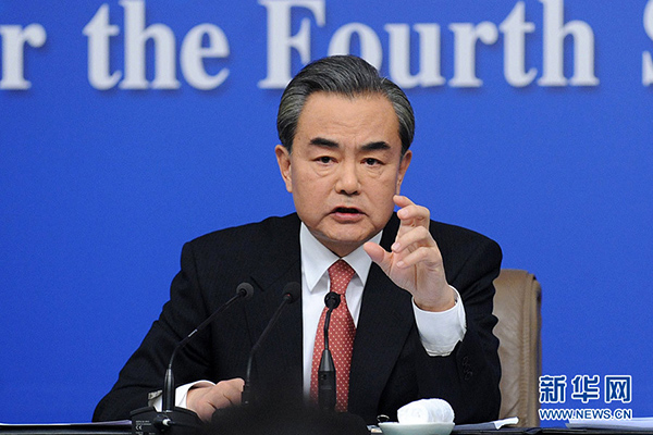 ????3月8日10時,十二屆全國人大四次會議新聞中心在梅地亞中心多功能廳舉行記者會,外交部部長王毅就“中國的外交政策和對外關系”的相關問題回答中外記者的提問。