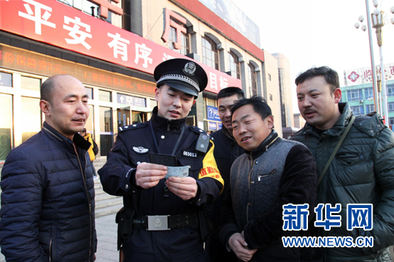 2月9日,侯馬站派出所民警為進出站旅客提供幫助。 新華網 田明 攝
