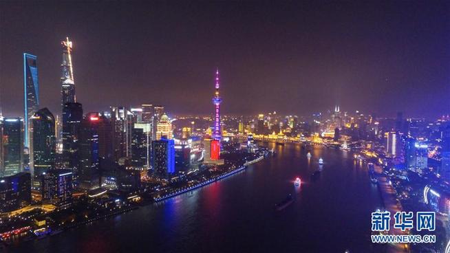 航拍夜幕下的上海黃浦江兩岸(2016年12月31日攝)。新華社記者 丁汀 攝