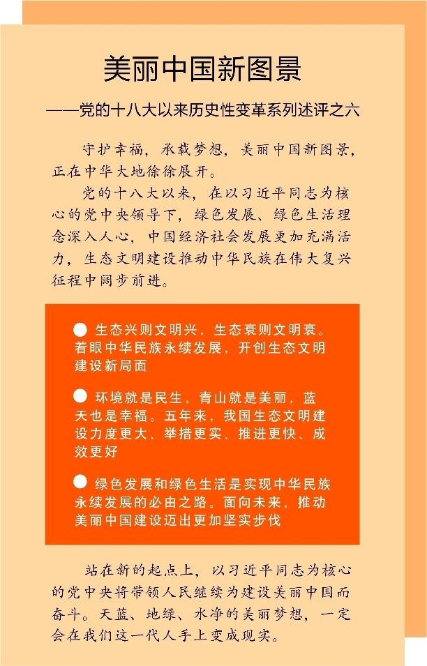 新華社北京10月14日電 題:美麗中國新圖景——黨的十八大以來歷史性變革系列述評之六
