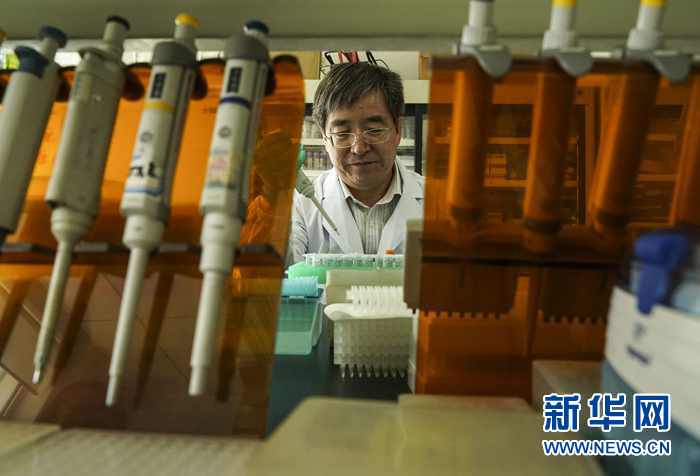 9月20日,何中虎在國家小麥改良中心實驗室做小麥分子標記檢測。新華社記者 殷剛 攝