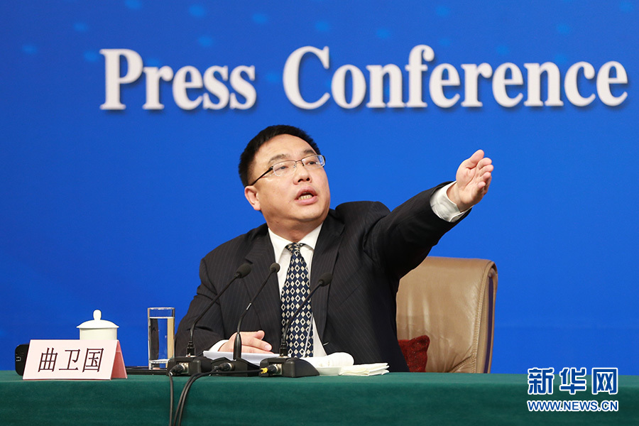 3月12日,十二屆全國人大五次會議新聞中心舉行記者會,邀請教育部部長陳寶生就“教育改革發(fā)展”的相關(guān)問題回答中外記者的提問。圖為記者會主持人曲衛(wèi)國。新華網(wǎng)/中國政府網(wǎng) 傅義洲 攝