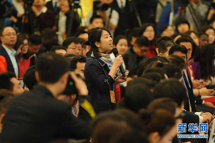 3月15日上午,國(guó)務(wù)院總理李克強(qiáng)在人民大會(huì)堂三樓金色大廳會(huì)見(jiàn)采訪十二屆全國(guó)人大五次會(huì)議的中外記者并回答記者提出的問(wèn)題。圖為財(cái)新網(wǎng)、財(cái)新周刊記者提問(wèn)。新華網(wǎng)/中國(guó)政府網(wǎng) 翟子赫 攝?