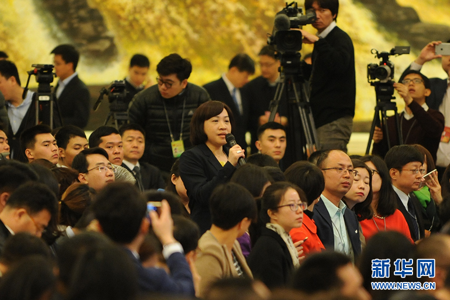 3月15日上午,國務院總理李克強在人民大會堂三樓金色大廳會見采訪十二屆全國人大五次會議的中外記者并回答記者提出的問題。圖為臺灣聯合報記者提問。新華網/中國政府網?孫韜 攝?