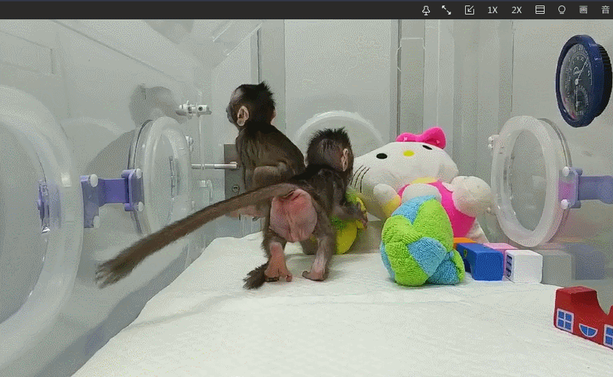 視頻為體細(xì)胞克隆猴“中中”和“華華”? 中科院供