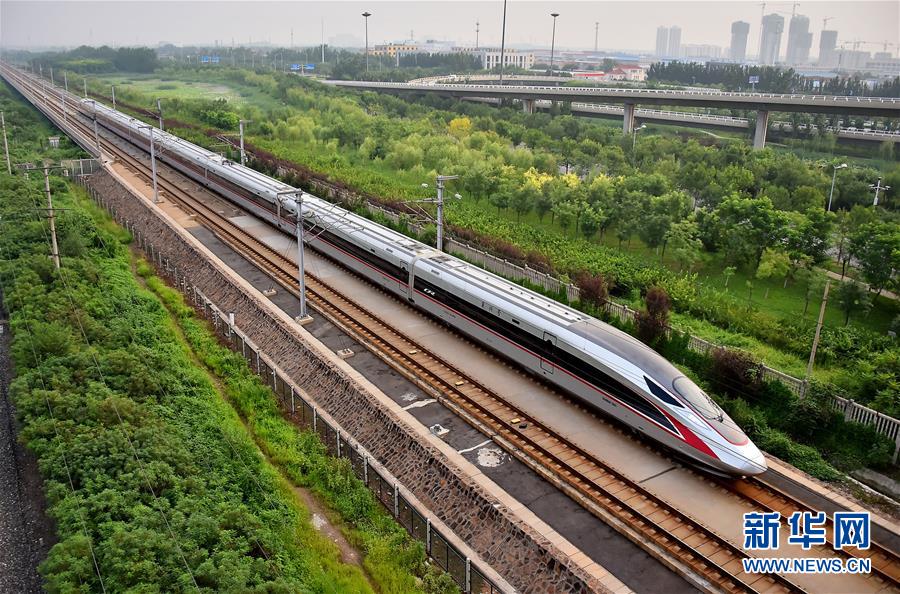 2017年8月21日,從北京南開往天津的C2001次“復興號”中國標準動車組駛入天津市區。自當日起,鐵路部門擴大“復興號”動車組列車開行范圍,京津城際列車開行19.5對“復興號”動車組列車。新華社發(楊寶森 攝)