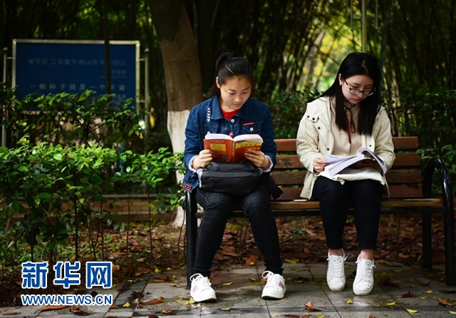 重慶市四川外國語大學的學生在校園內晨讀(4月20日攝)。新華社記者 王全超 攝