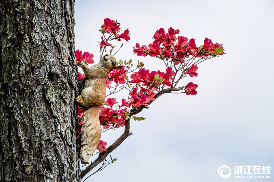 4月21日,全國森林旅游示范縣、浙中杜鵑谷——磐安縣盤峰鄉高姥山核心區塊的2000多畝各色杜鵑競相爭艷,滿山遍野杜鵑姿態萬千,花團錦簇,身臨其中,宛如置身仙境。(浙江在線拍友 陳溢之 攝)