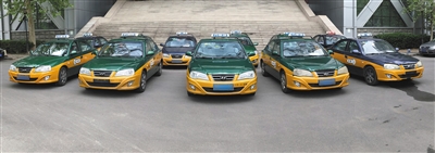 4月23日,北京市刑偵總隊大院內,停放有10多輛出租車,從外觀來看與普通出租車無異。