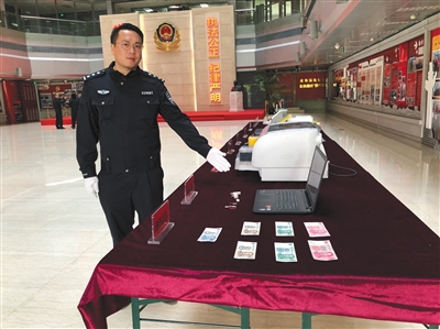 北京市刑偵總隊,警方現場展示制造假幣的相關設備工具。