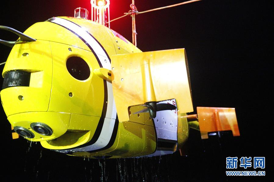 “海斗”號自主遙控水下機器人在西太平洋進(jìn)行下潛實驗(2016年7月18日攝)。新華社發(fā)(沈陽自動化所提供)