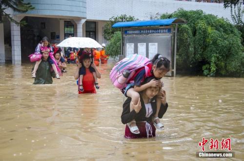 7月2日,四川仁壽縣清水鎮遭遇暴雨襲擊,清水小學進水被淹,當地迅速啟動防汛應急預案,1093名師生全部安全轉移。 梁衛東 攝