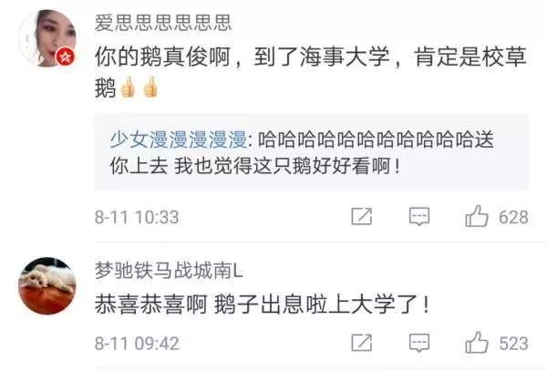 原來前些日子,一位名叫“西弗勒斯FF”的網友發微博稱,自己是上海松江區寵物鵝的主人,由于要搬家,養了一年半的鵝無法繼續養下去,想問上海海事大學能不能幫忙收養,并稱自己的鵝非常英俊。