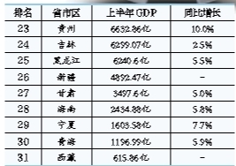 29省區市亮上半年GDP成績單 重慶放緩遼寧回暖