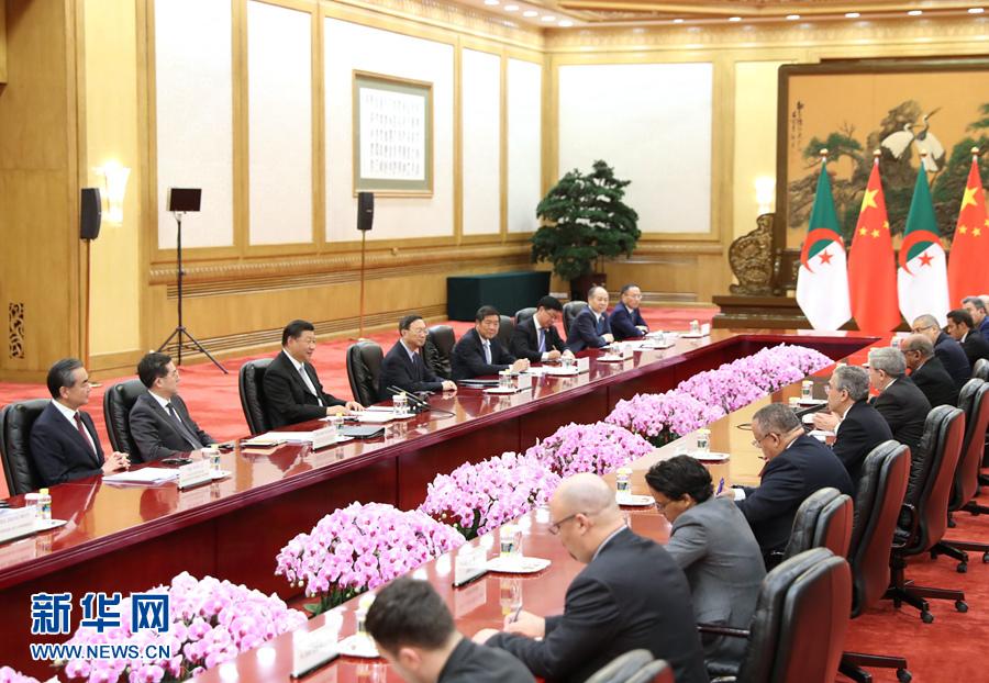 烏葉海亞表示,昨天,我向布特弗利卡總統(tǒng)報告了北京峰會的盛況。他讓我轉達對習近平主席的熱烈祝賀以及對中國支持非洲的衷心感謝。烏葉海亞表示,阿中關系歷史悠久。阿爾及利亞在爭取民族獨立和實現(xiàn)國家發(fā)展中得到中方寶貴支持,雙方在國際事務中一直緊密配合。阿方贊賞并支持北京峰會提出的中非合作新舉措,愿以此次雙方簽署“一帶一路”合作協(xié)議為契機,深化雙方務實合作。