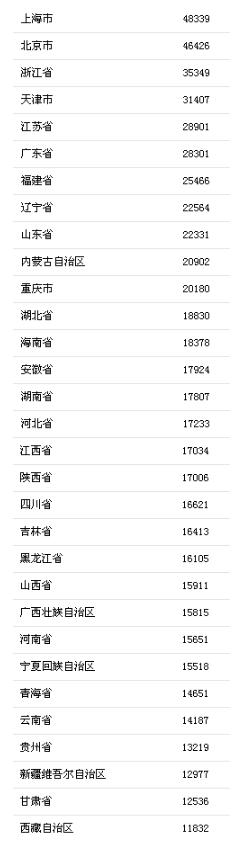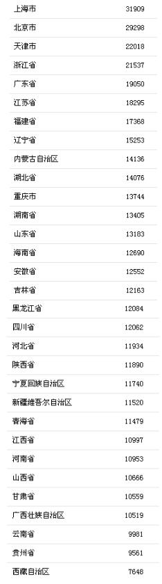 前三季度31省區(qū)市人均可支配收入。來自國(guó)家統(tǒng)計(jì)局
