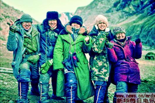 2017年12月,滕沐穎(右二)在新疆伊犁州結束十天“扎荒”準備下山。滕沐穎(總編室)